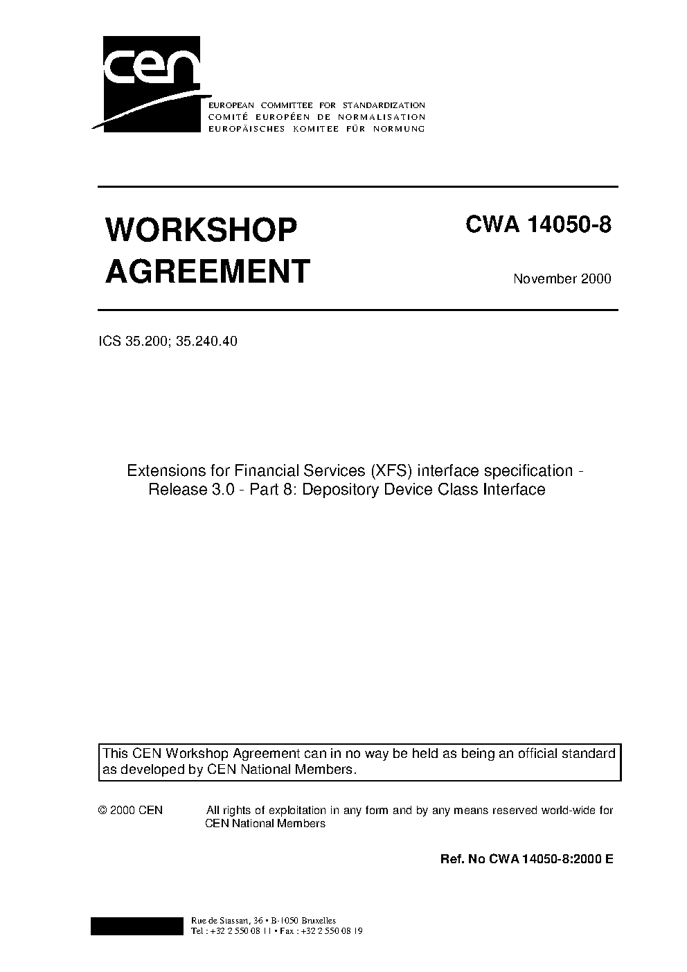 Extensions for Financial Services (XFS) interface specification - Release 3.0 - Part 8: Depository Device Class Interface