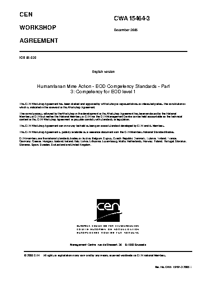 Humanitarian Mine Action - EOD Competency Standards - Part 3: Competency for EOD level 1