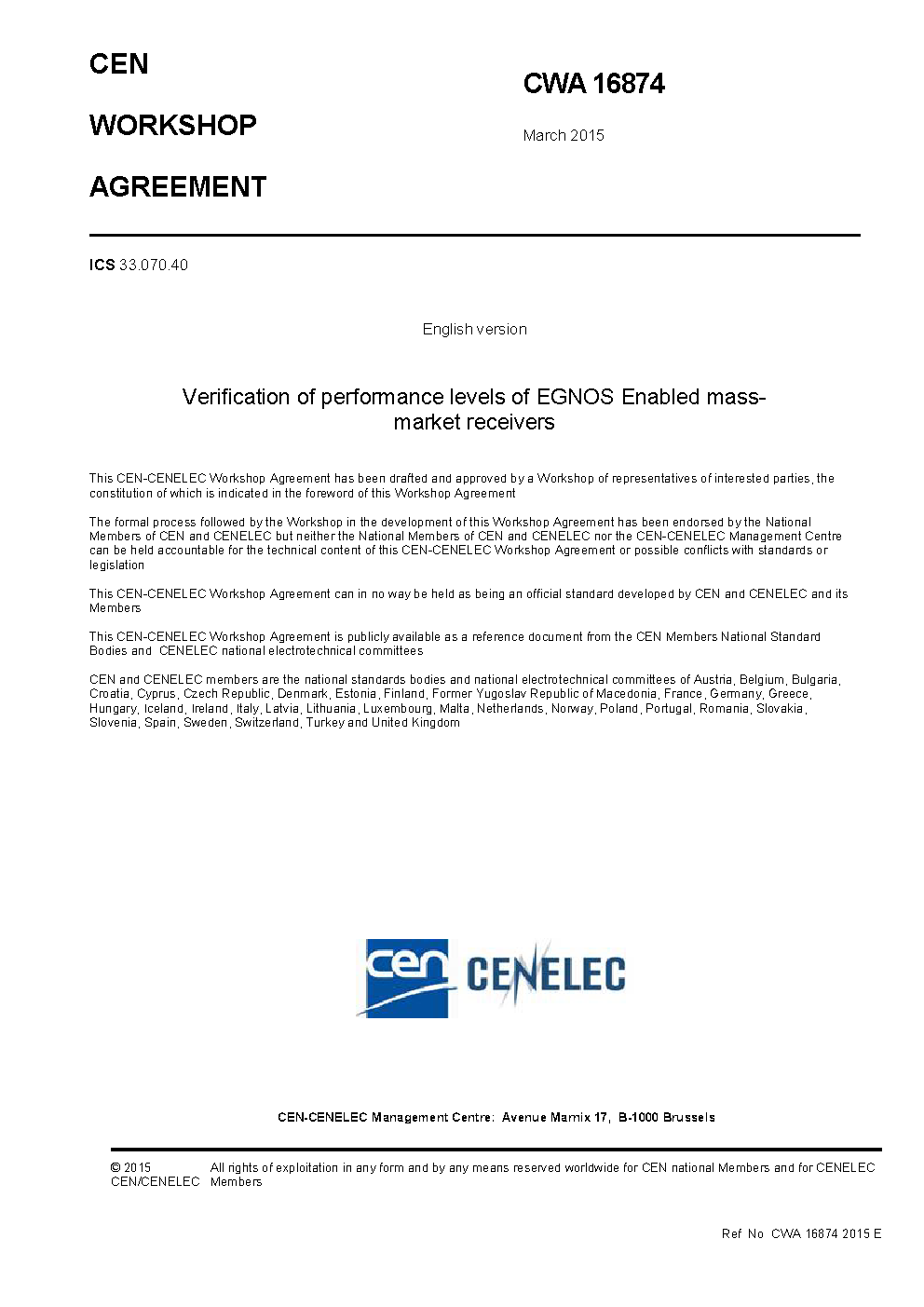 The scope of the document is EGNOS capable products for mass market applications using EGNOS Open Service and/or EDAS. In the context of this CWA, mass market users are understood as non-safety/non-liability critical and non-professional users. The considered products are chipsets, terminals and applications.