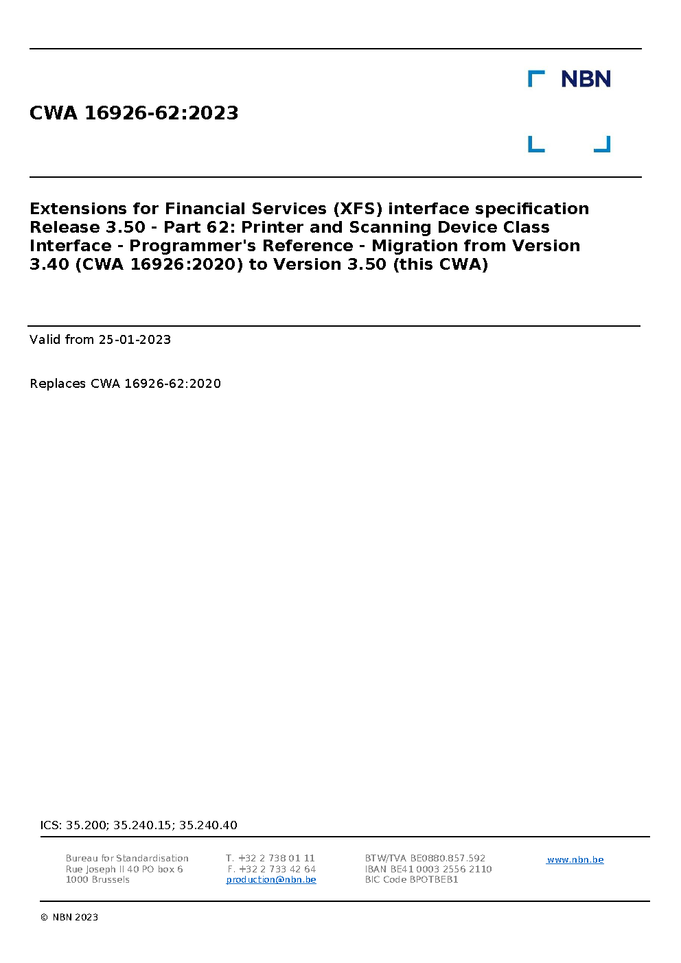 | Publisher | Bureau de Normalisation Belge (NBN) |