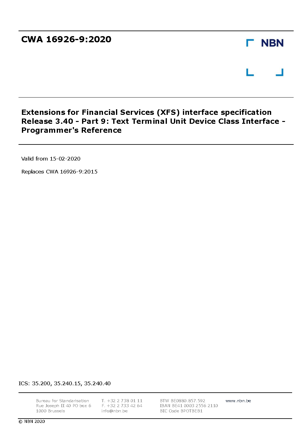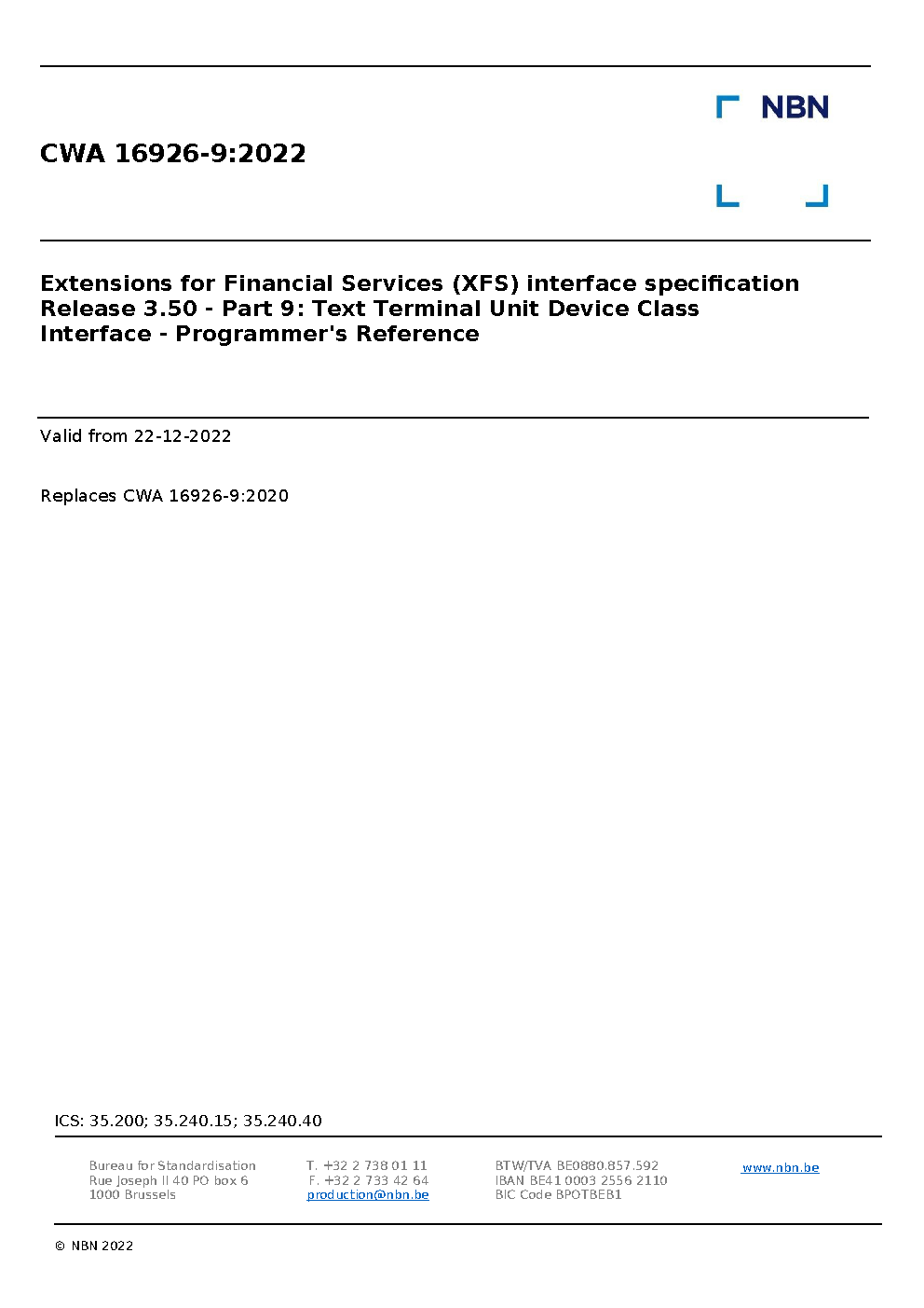 | Publisher | Bureau de Normalisation Belge (NBN) |