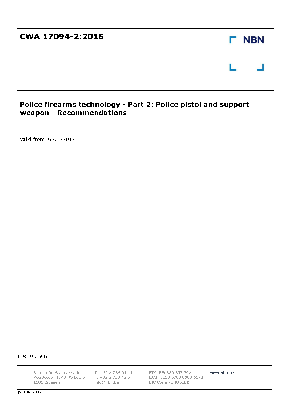 This document has been written for the purpose of defining the features of a personal police sidearm and primary support weapon. In its full extent it can be used for type certification of a product. When using it to define the technical requirements for an invitation to tender a subset of the requirements can be selected and rated according to their importance to the procuring unit. A further subset can be defined for carrying out acceptance inspections of a manufacturing lot or for assessing and monitoring the current firearms in use.