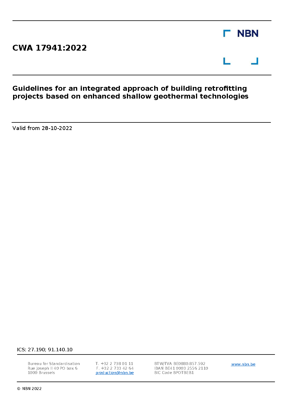 This CEN Workshop Agreement (CWA) provides orientation for the management of building retrofitting projects based on enhanced shallow geothermal technologies.