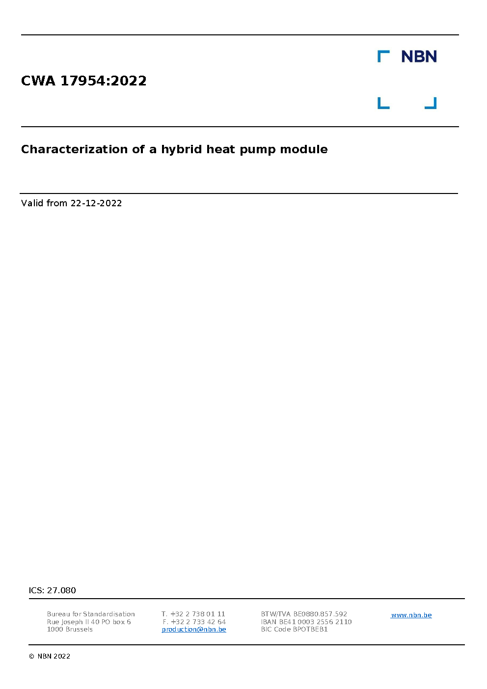 | Publisher | Bureau de Normalisation Belge (NBN) |