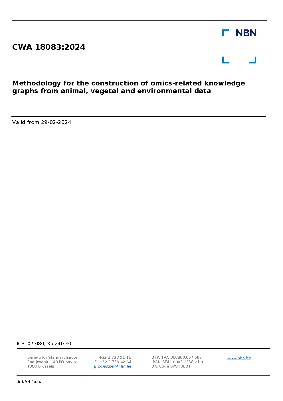 This CWA (CEN Workshop Agreement) provides a methodology for the construction of knowledge graphs on topics related to non-human omics data, specifically in the domain related to animal, plant, and environmental studies in general. This methodology provides a guide for the representation and analysis of such data in these domains to facilitate the understanding and discovery of relevant relationships and patterns about the information contained in a potential knowledge graph.