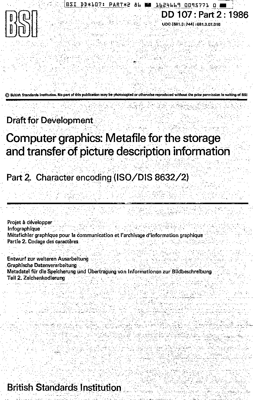 Computer graphics: metafile for the storage and transfer of picture description information Character encoding (ISO/DIS 8632/2)