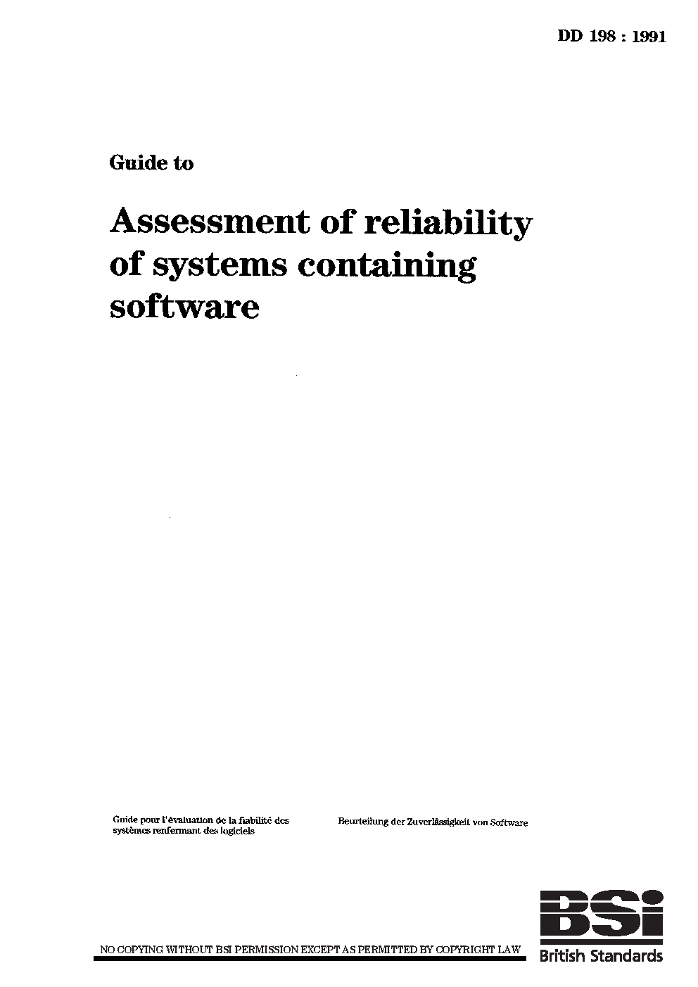 Guide to assessment of reliability of systems containing software