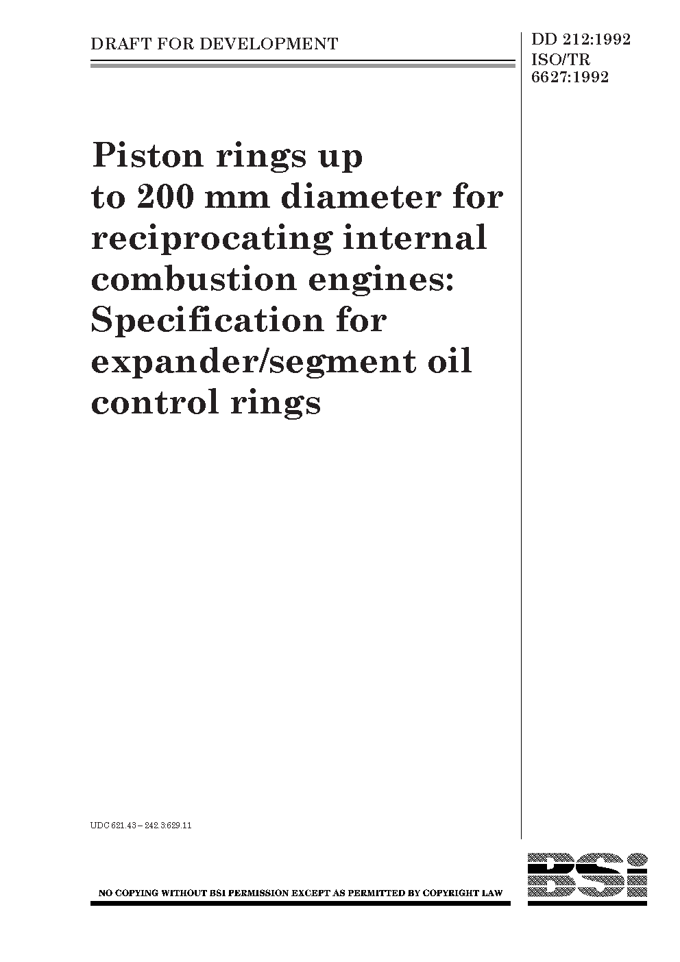 Piston rings up to 200 mm diameter for reciprocating internal combustion engines. Specification for expander/segment oil control rings