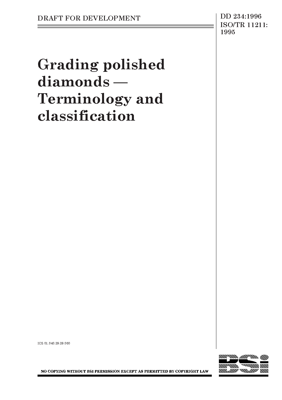 Surface defects;Inclusions;Flaws;Colour;Diamond;Precious stones;Defects;Terminology;Weight (mass);Shape;Surface texture;Classification systems;Jewellery;Grades (quality);Grading (quality);Polishing