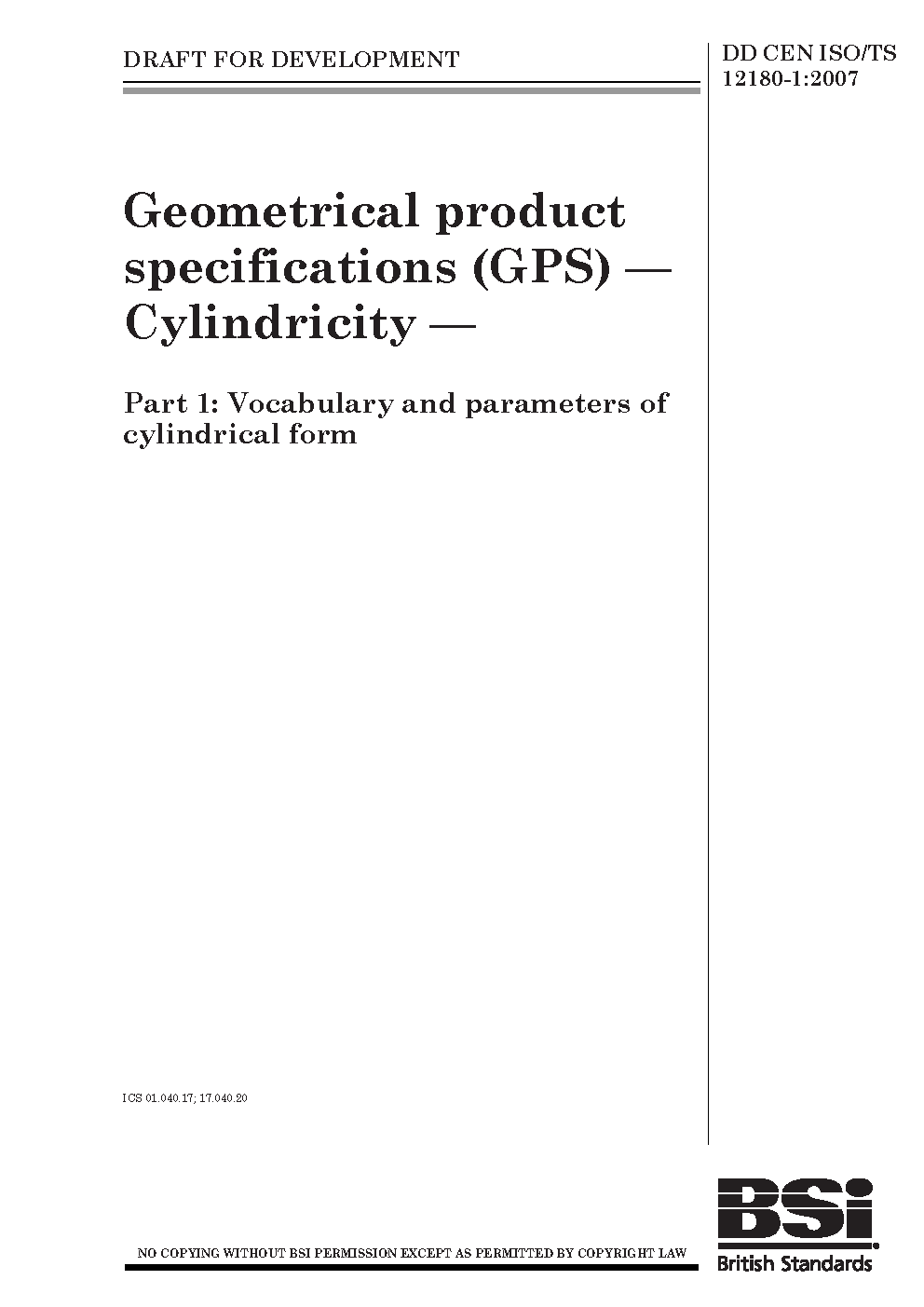 Geometrical product specifications (GPS). Cylindricity Vocabulary and parameters of cylindrical form