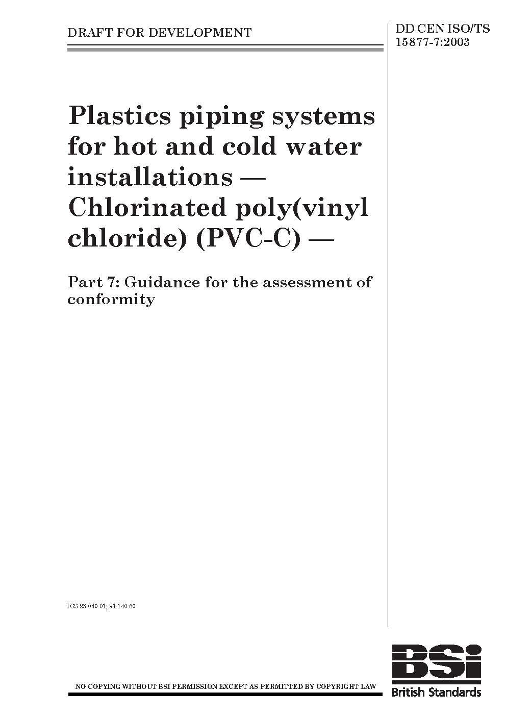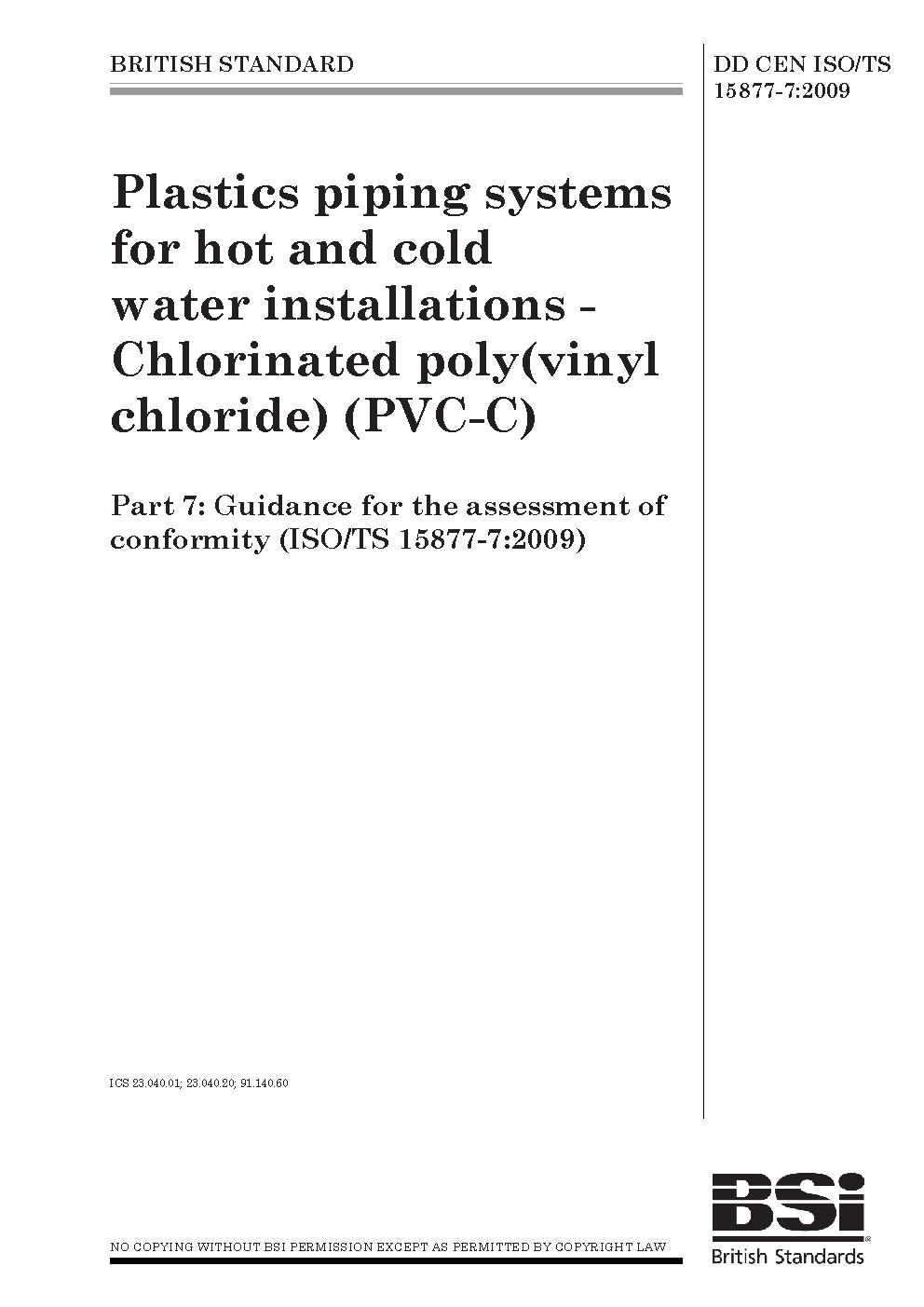 Plastics piping systems for hot and cold water installations. Chlorinated poly(vinyl chloride) (PVC-C) Guidance the assessment of conformity
