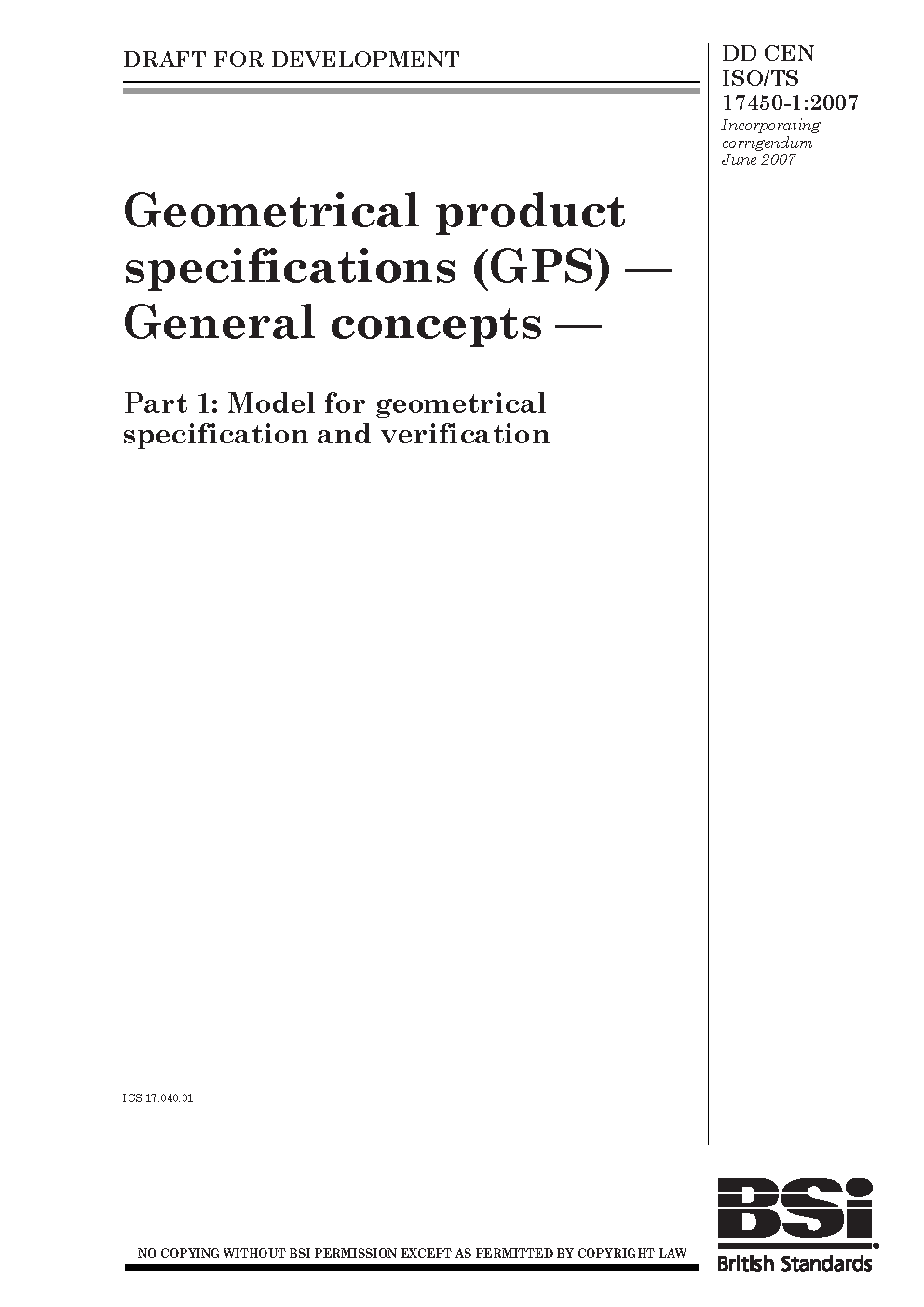 Geometrical product specifications (GPS). General concepts Model for geometrical specification and verification