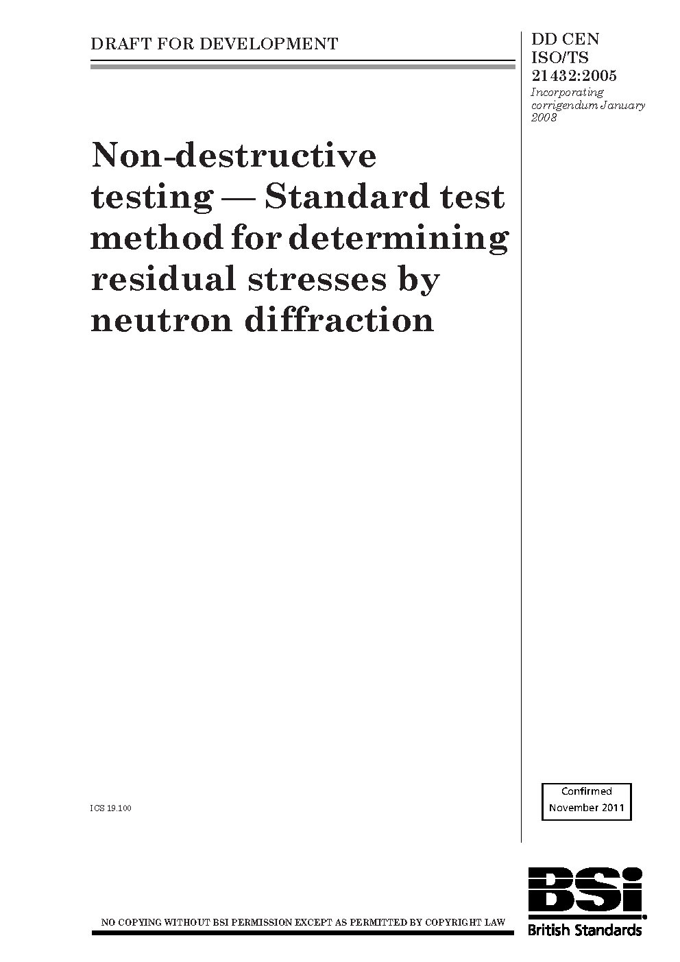 Neutron diffraction;Specimen preparation;Elastic properties (fluids);Test specimens;Non-destructive testing;Residual stresses