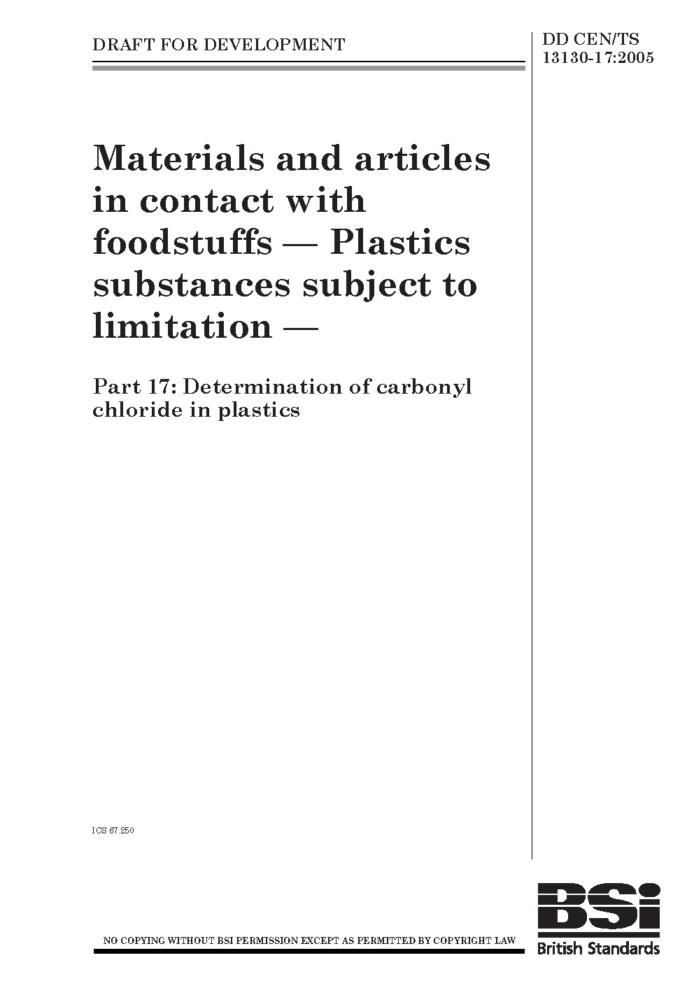 Materials and articles in contact with foodstuffs. Plastics substances subject to limitation Determination of carbonyl chloride plastics