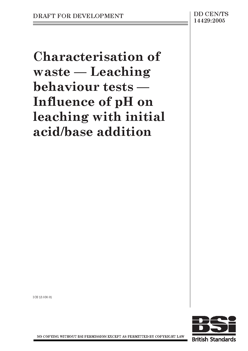 Characterization of waste. Leaching behaviour tests. Influence of pH on leaching with initial acid/base addition
