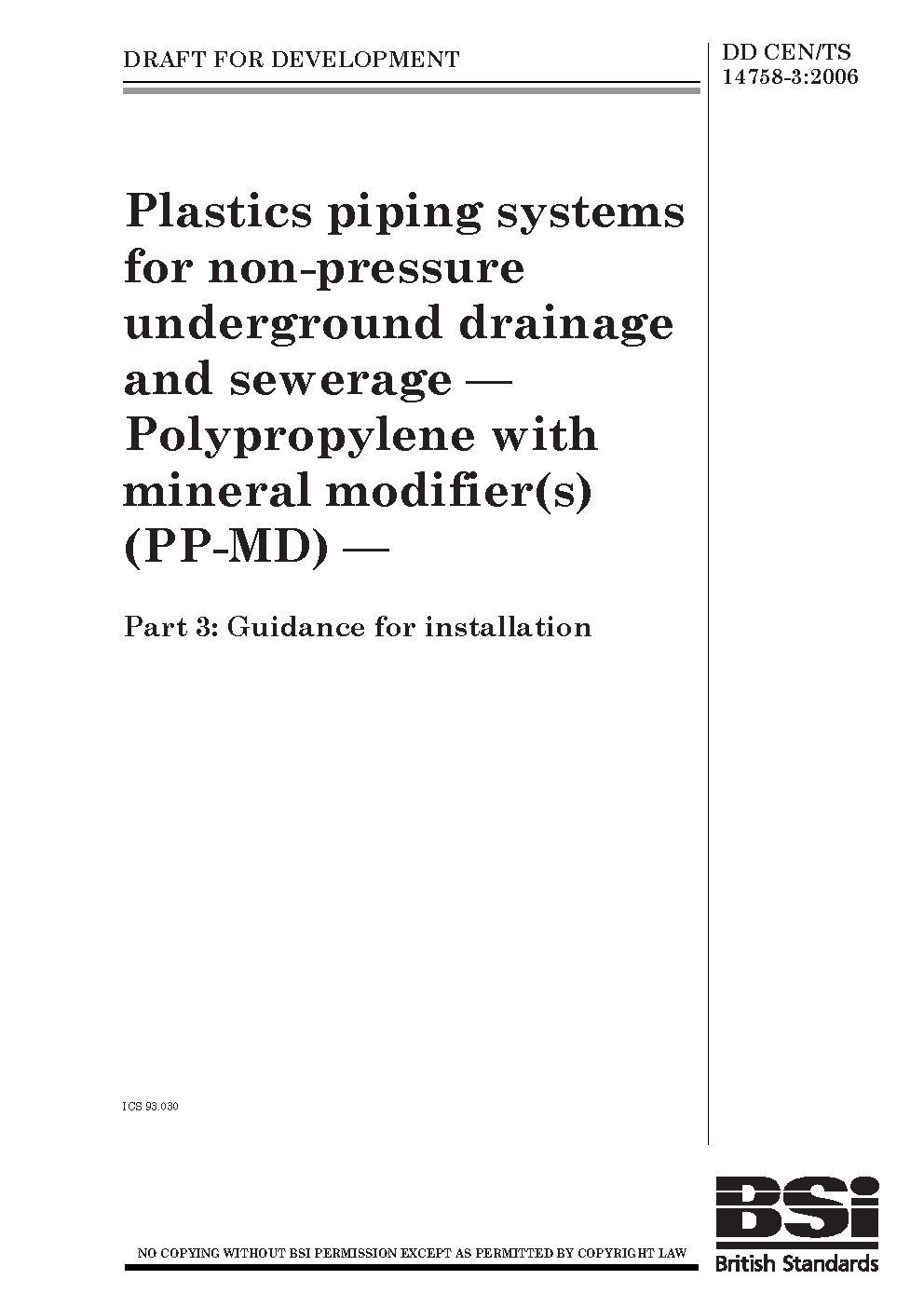 Plastics piping systems for non-pressure underground drainage and sewerage. Polypropylene with mineral modifier(s)(PP-MD) Guidance installation