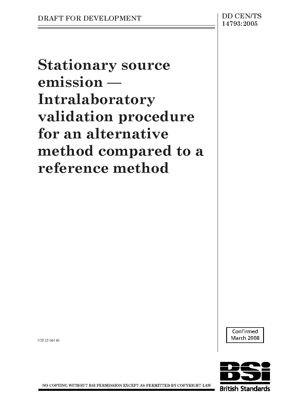 Stationary source emission. Intralaboratory validation procedure for an alternative method compared to a reference method