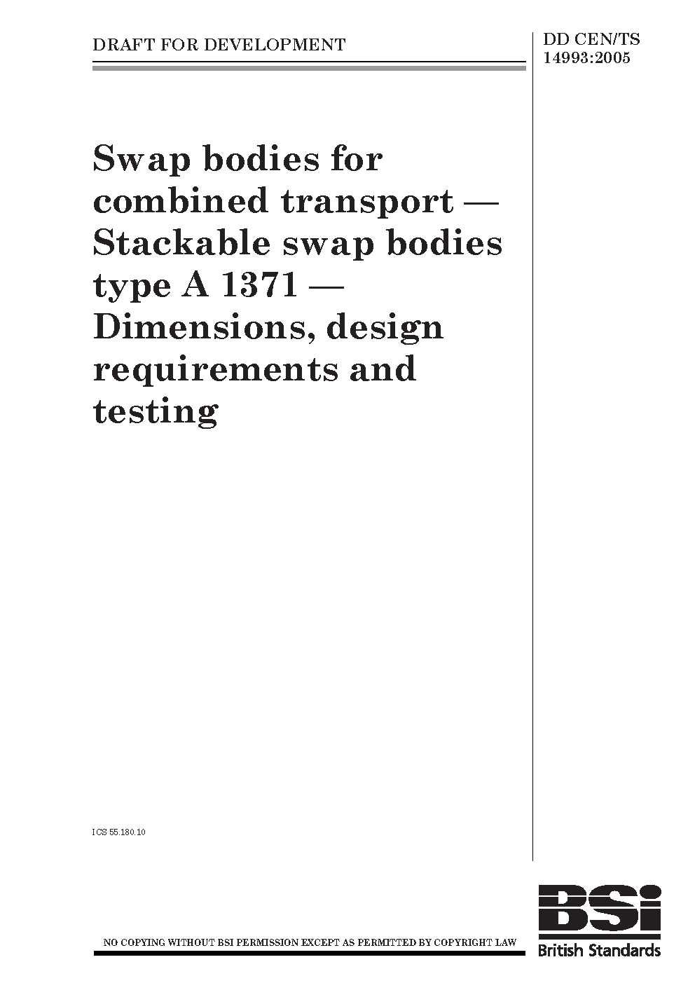 Swap bodies for combined transport. Stackable swap bodies type A 1371.Di mensions, design requirements and testing