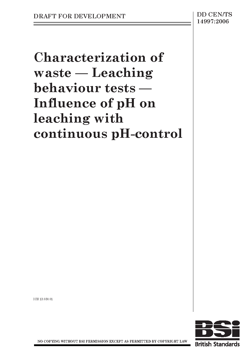 Characterization of waste. Leaching behaviour tests. Influence of pH on leaching with continuous pH-control