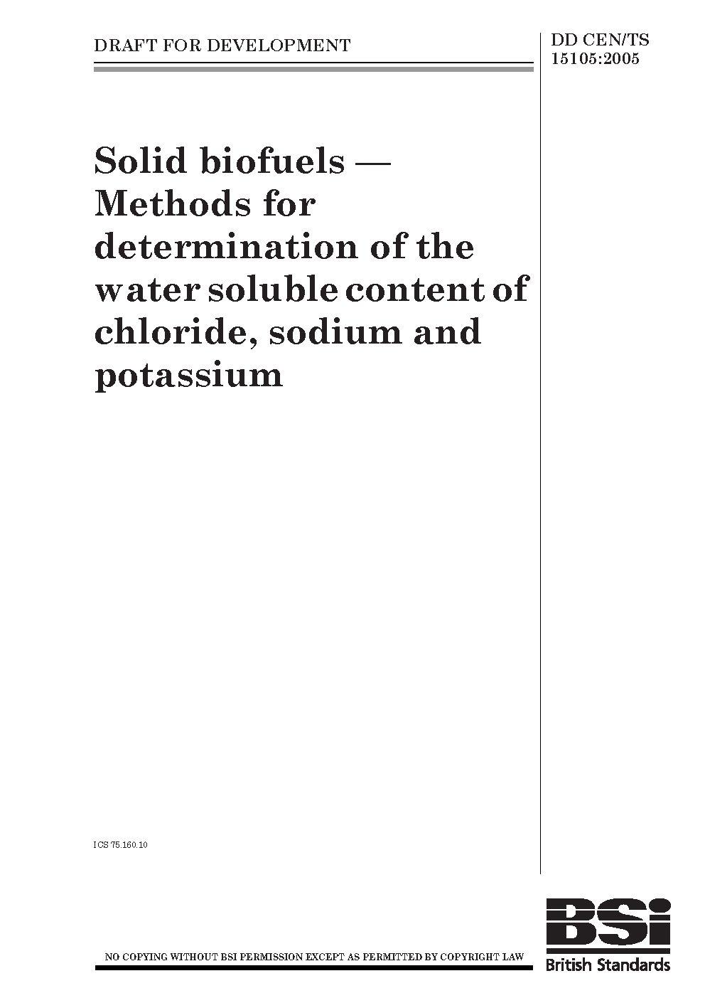 Solid biofuels. Methods for determination of the water soluble content of chloride, sodium and potassium