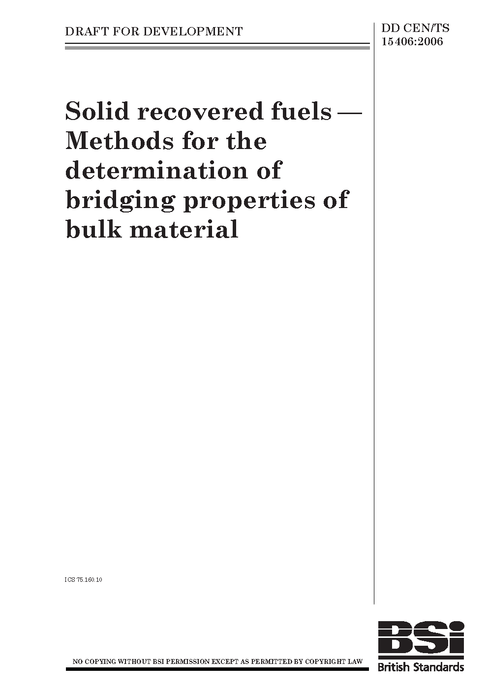 Solid recovered fuels. Methods for the determination of bridging properties of bulk materials