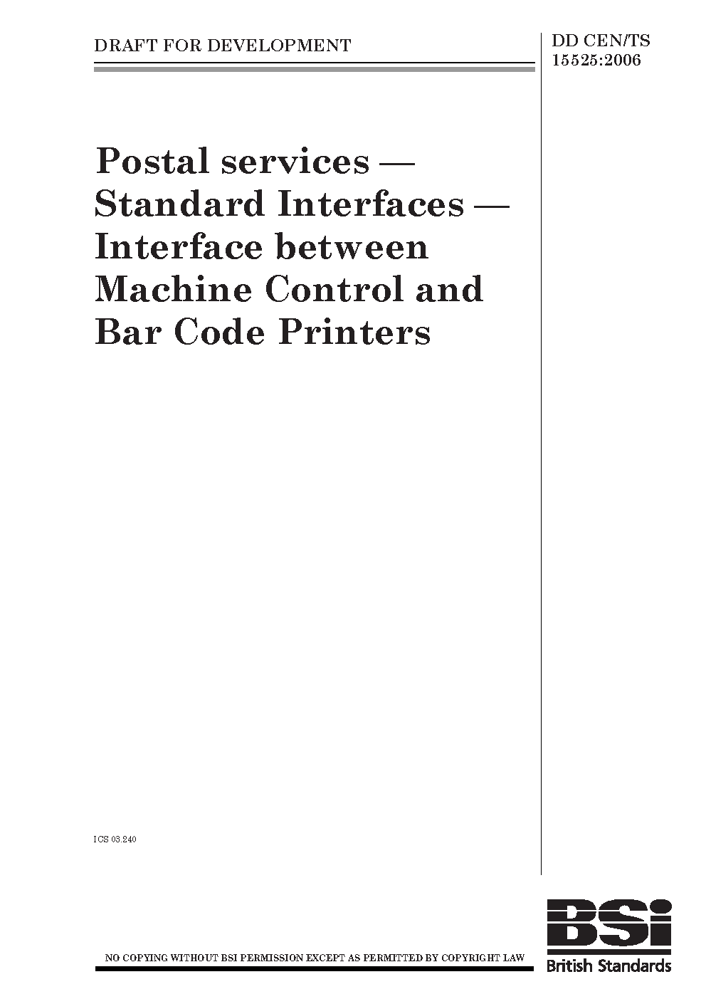 Postal services. Standard interfaces. Interface between machine control and bar code printers