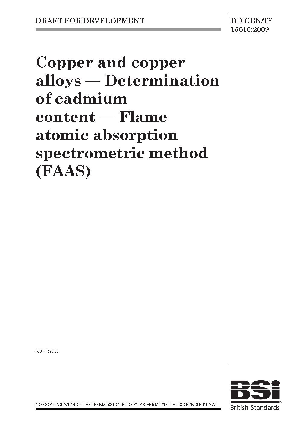 Copper and copper alloys. Determination of cadmium content. Flame atomic absorption spectrometric method (FAAS)
