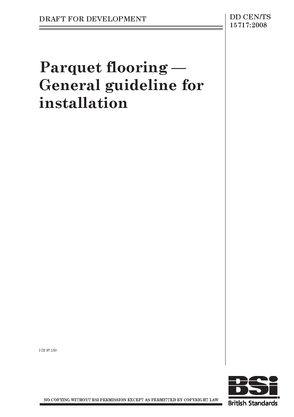 Wood products;Finishes;Instructions for use;Installation;Floor coverings;Joinery;Panel flooring;Floors;Dimensional tolerances;Environment (working);Parquet panel flooring