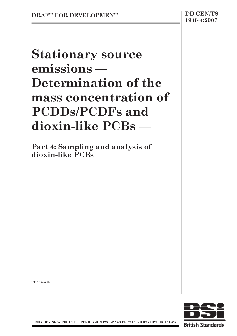 Stationary source emissions. Determination of the mass concentration PCDDs/PCDFs and dioxin-like PCBs Sampling analysis
