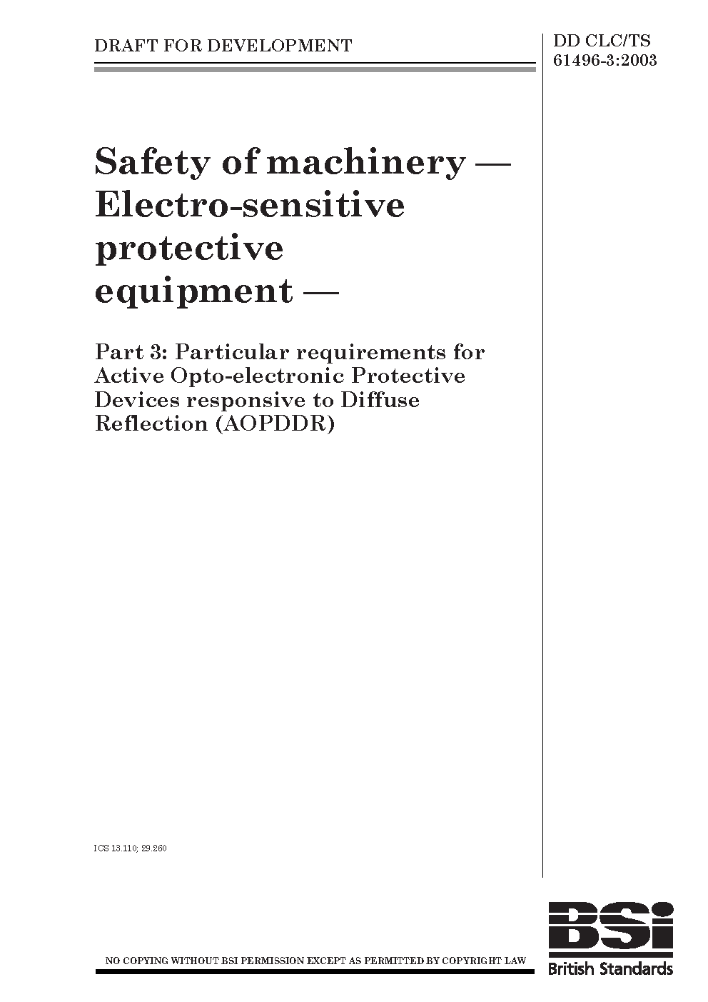DD CLC/TS 61496-3:2008
