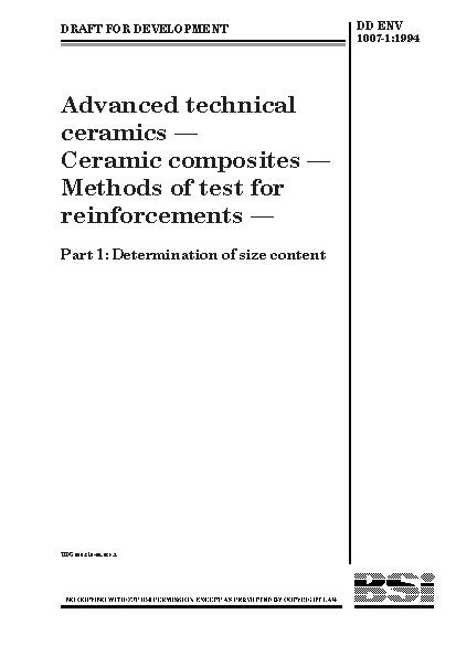 Advanced technical ceramics. Ceramic composites. Methods of test for reinforcements Determination size content