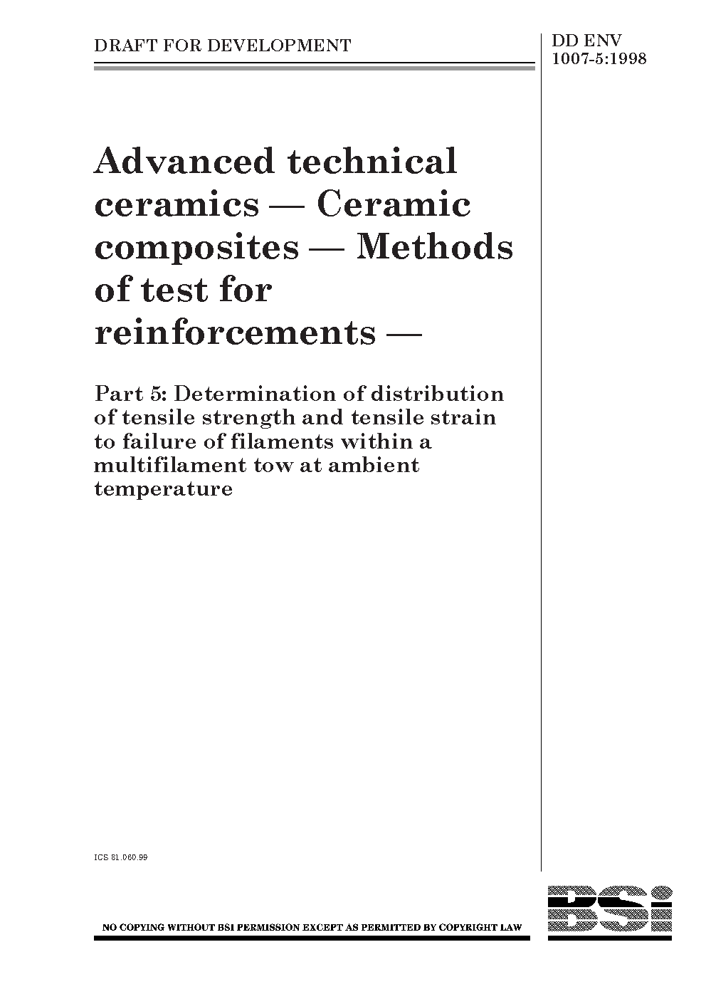 Advanced technical ceramics. Ceramic composites. Methods of test for reinforcements Determination distribution tensile strength and strain to failure filaments within a multifilament tow at ambient temperature