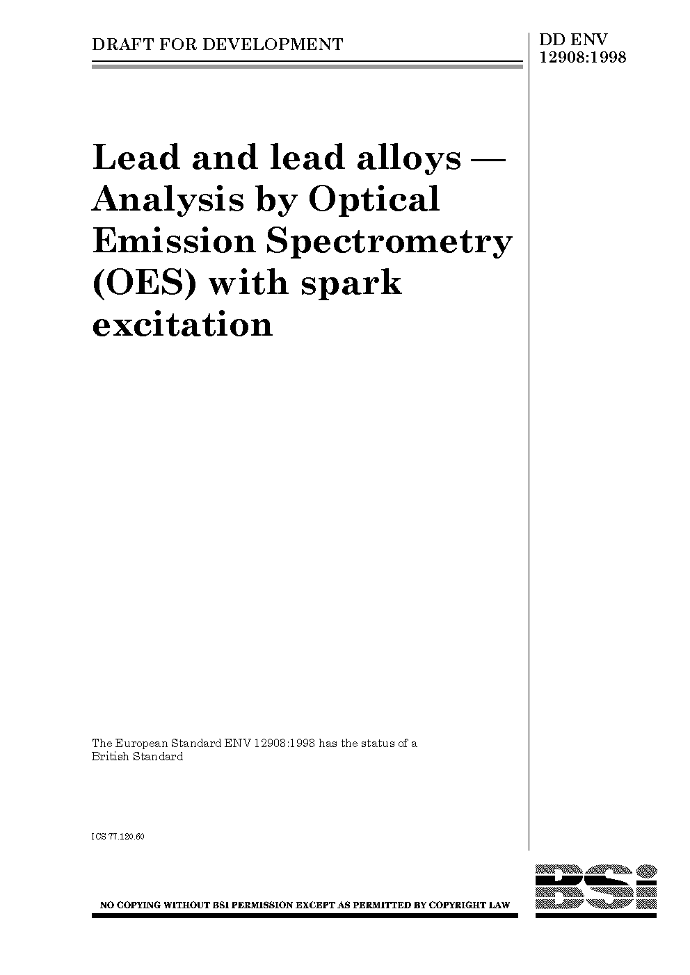 Lead and lead alloys. Analysis by optical emission spectrometry (OES) with spark excitation