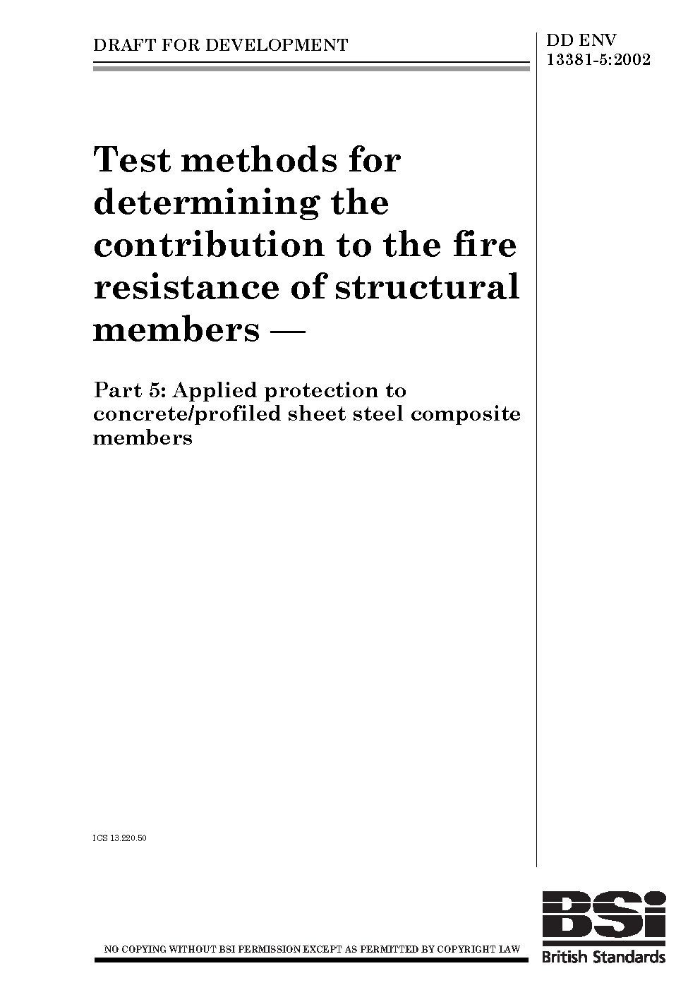 Test methods for determining the contribution to fire resistance of structural members Applied protection concrete/profiled sheet composite
