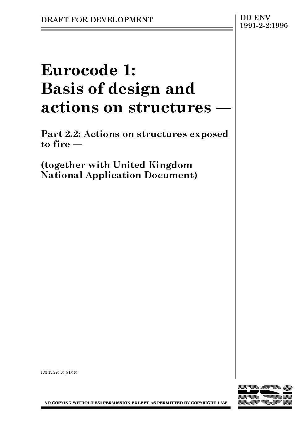 Eurocode 1. Basis of design and actions on structures Actions exposed to fire (together with United Kingdom National Application Document)