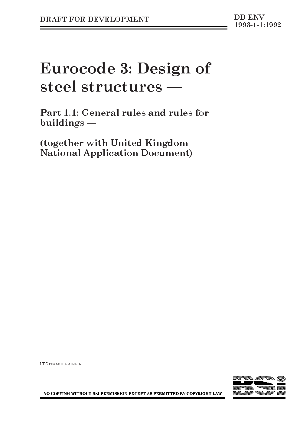 Eurocode 3. Design of steel structures General rules and for buildings (together with United Kingdom National Application Document)