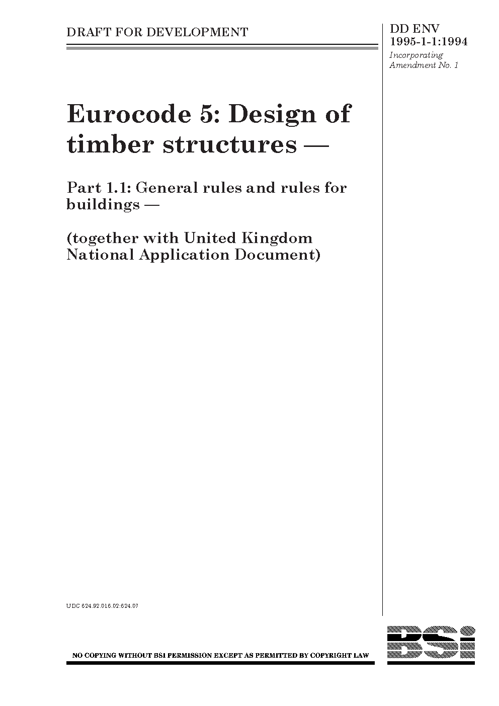 Eurocode 5. Design of timber structures General rules and for buildings (together with United Kingdom National Application Document)