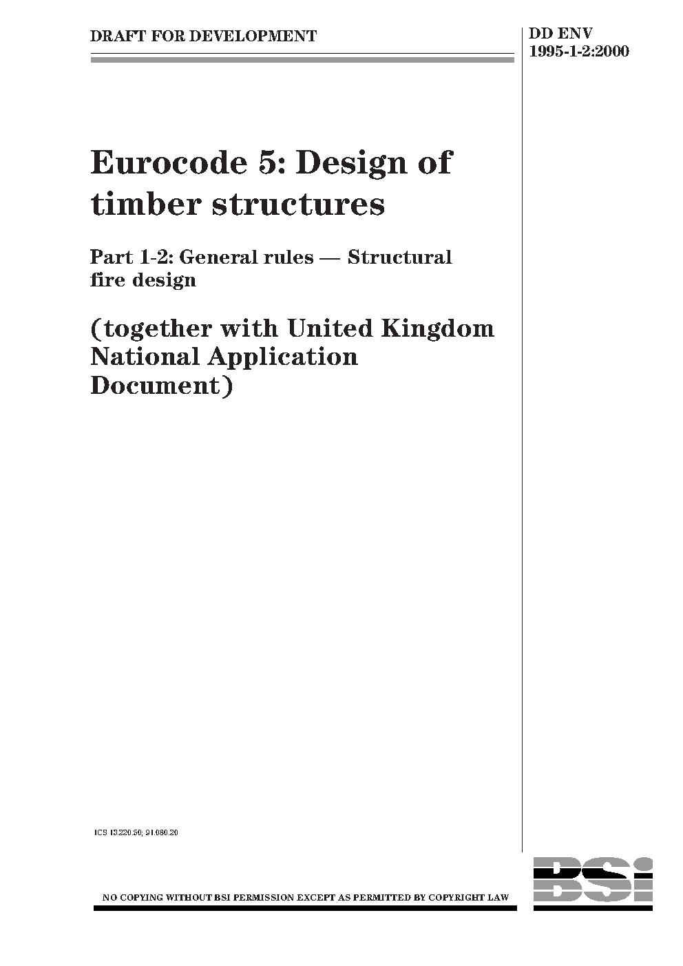 Eurocode 5. Design of timber structures General rules. Structural fire design (together with United Kingdom National Application Document)
