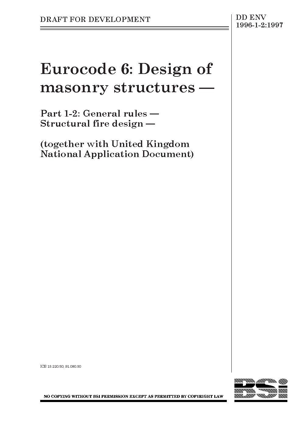 Eurocode 6. Design of masonry structures. General rules for buildings Structural fire design (together with United Kingdom National Application Document)