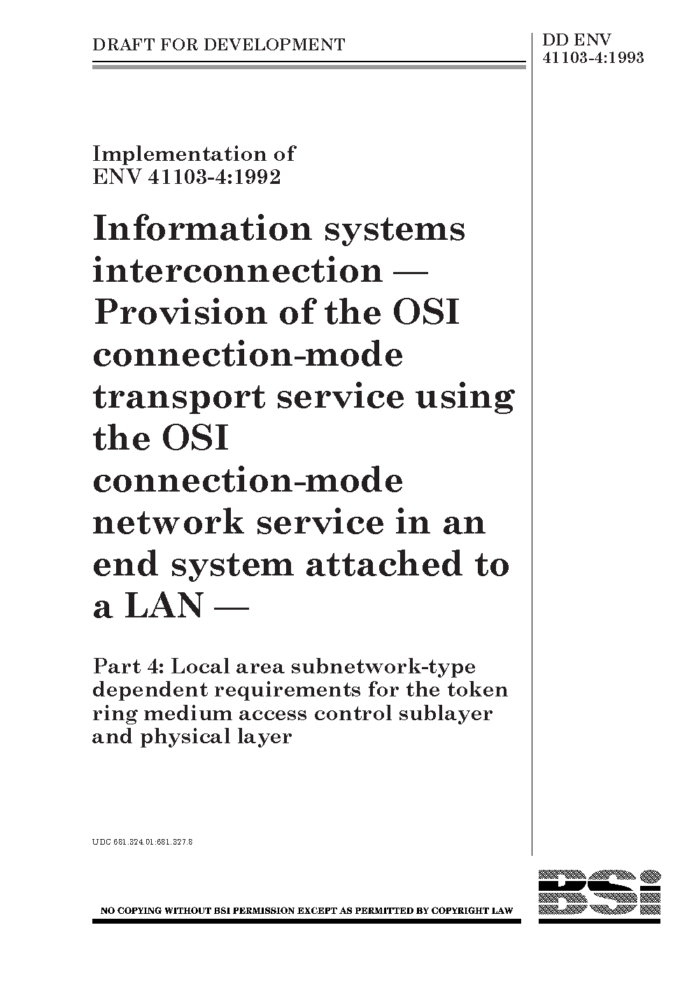 Information systems inter-connection. Provision of the OSI connection-mode transport service using network in an end system attached to a LAN Local area subnetwork-type dependent requirements for token ring medium access control sublayer and physical layer