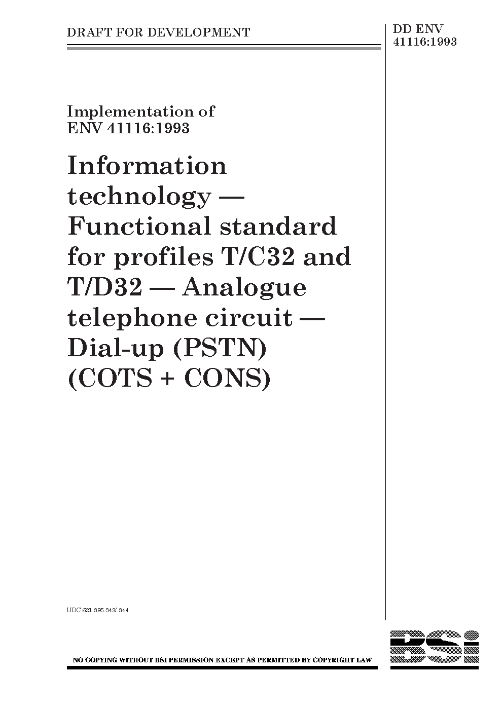 Information technology. Functional standard for profiles T/C32 and T/D32. Analogue telephone circuit. Dial-up (PSTN) (COTS + CONS)