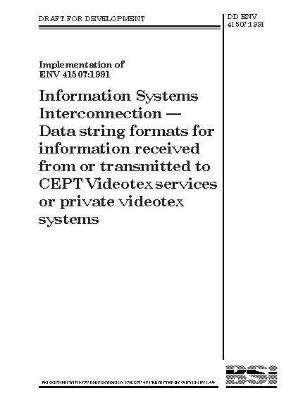 Information Systems Interconnection. Data string formats for information received from or transmitted to CEPT videotex services or private videotex systems