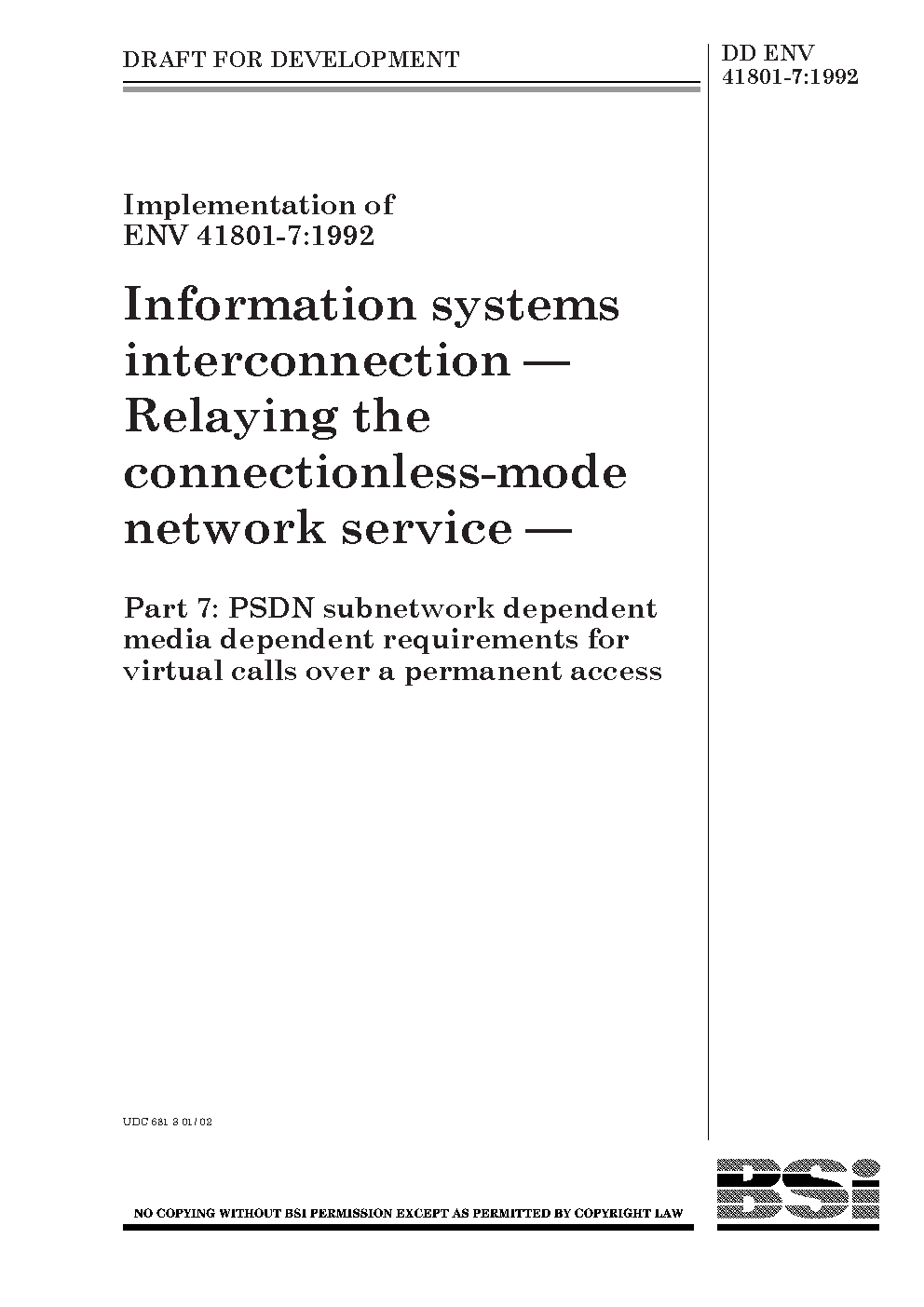 Information systems interconnection. Relaying the connectionless-mode network service PSDN subnetwork dependent media requirements for virtual calls over a permanent access
