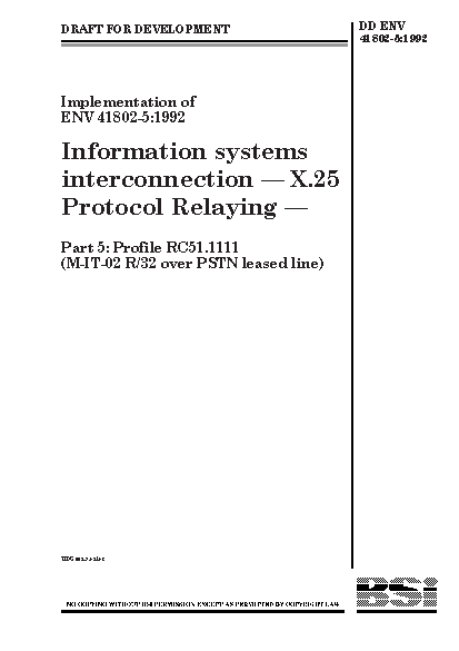 Information systems interconnection. X.25 protocol relaying Profile RC51.1111 (M-IT-02 R/32 over PSTN leased line)