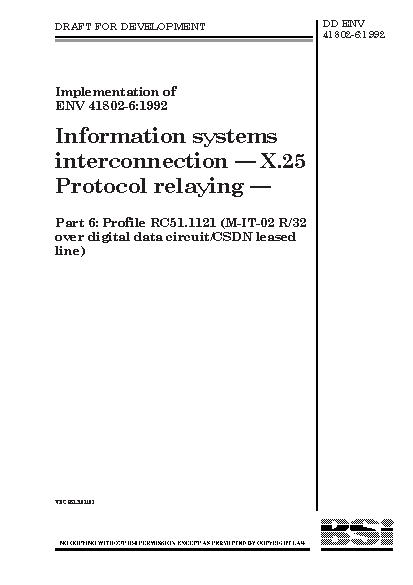 Information systems interconnection. X.25 protocol relaying Profile RC51.1121 (M-IT-02 R/32 over digital data circuit/CSDN leased line)