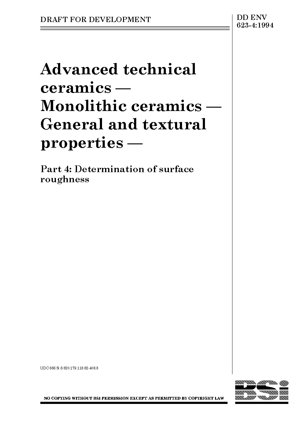 Advanced technical ceramics. Monolithic General and textural properties Determination of surface roughness