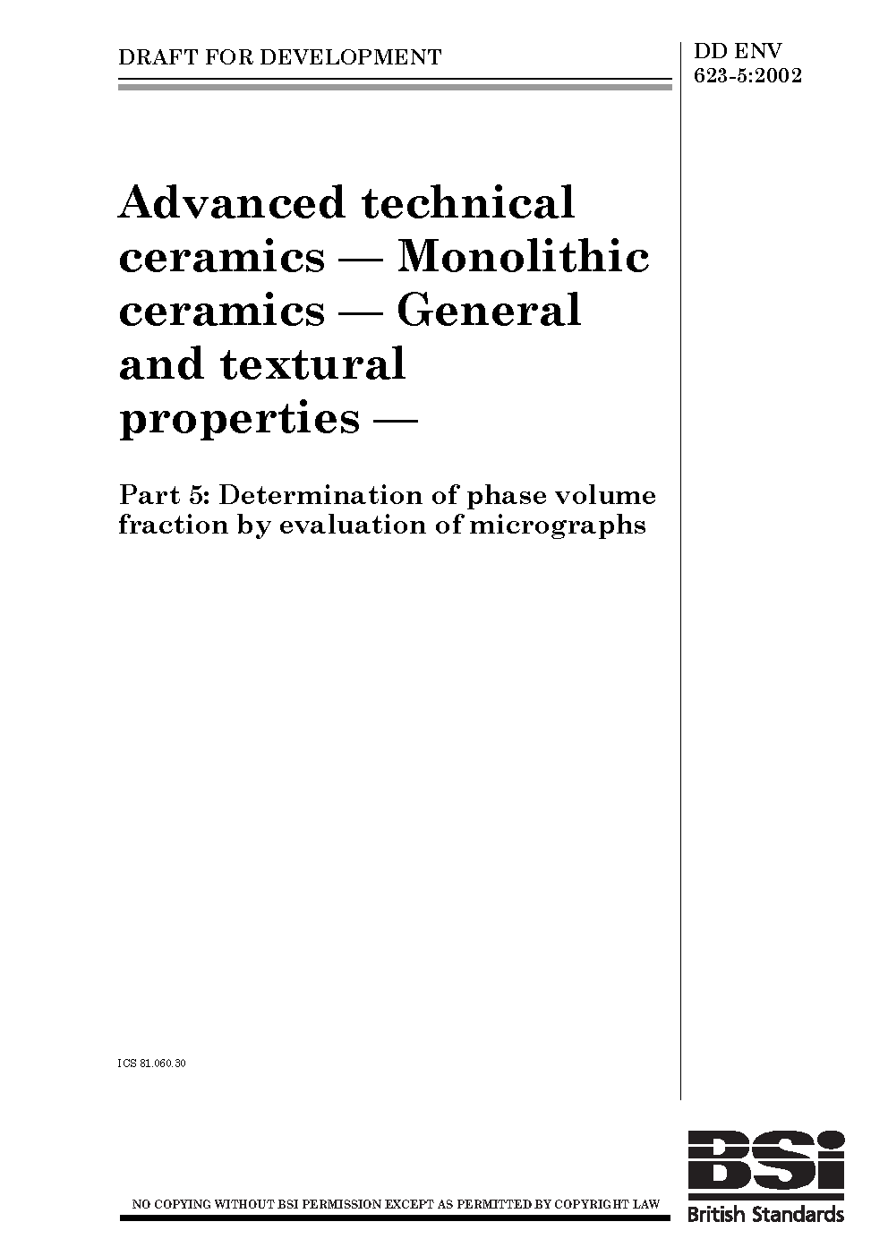 Advanced technical ceramics. Monolithic General and textural properties Determination of phase volume fraction by evaluation micrographs