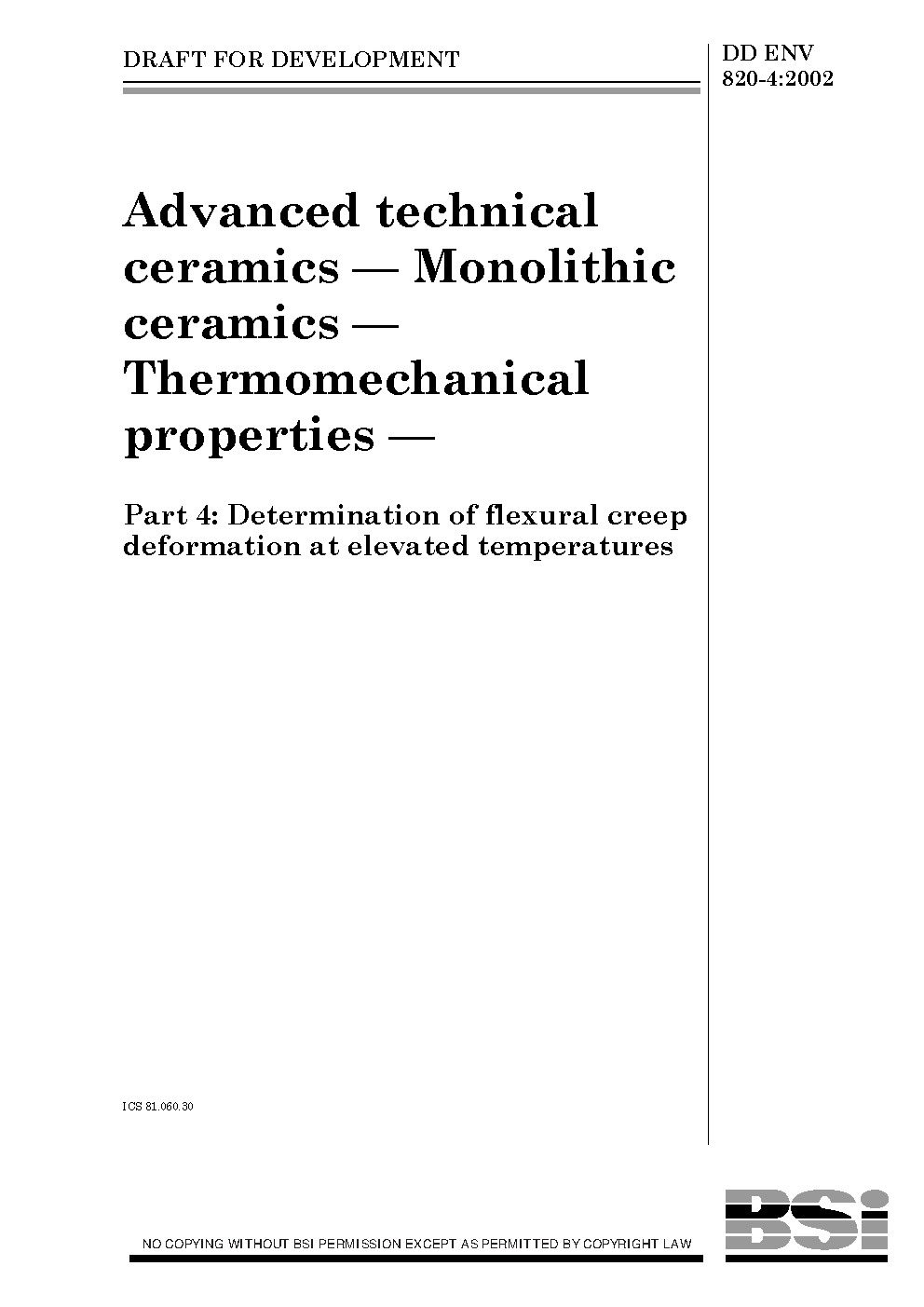 Advanced technical ceramics. Methods of testing monolithic Thermo-mechanical properties Determination flexural creep deformation at elevated temperatures