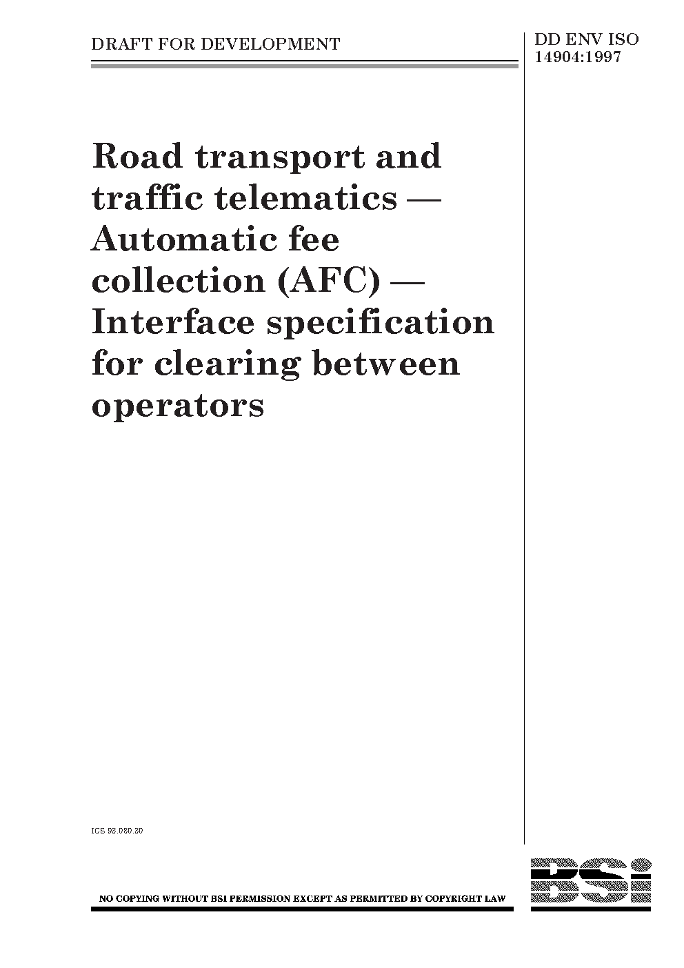 Road transport and traffic telematics. Automatic fee collection (AFC). Interface specification for clearing between operators