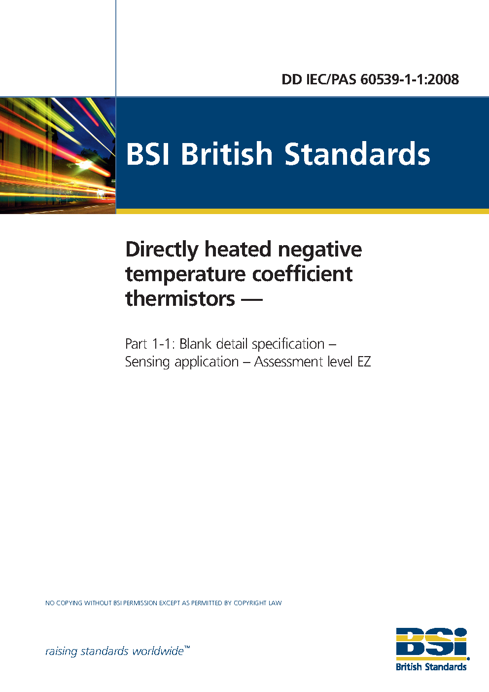 Directly heated negative temperature coefficient thermistors Blank detail specification. Sensing application. Assessment level EZ